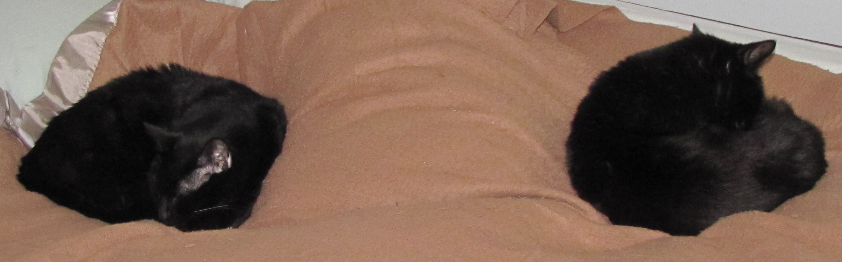No sooner than he had gotten out of bed, two clusters of black fur formed on the blanket.