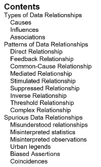 A topology of data relationships is important because it helps people to understand that not all relationships reflect a cause. They may just be the result of an influence or an association or even mere coincidence. Furthermore, you can’t always tell what type and pattern of relationship a data set represents. There are at least 27 possibilities not even counting spurious relationships. That’s where numbercrunching ends and statistical-thinking shifts into high-gear. Be prepared.